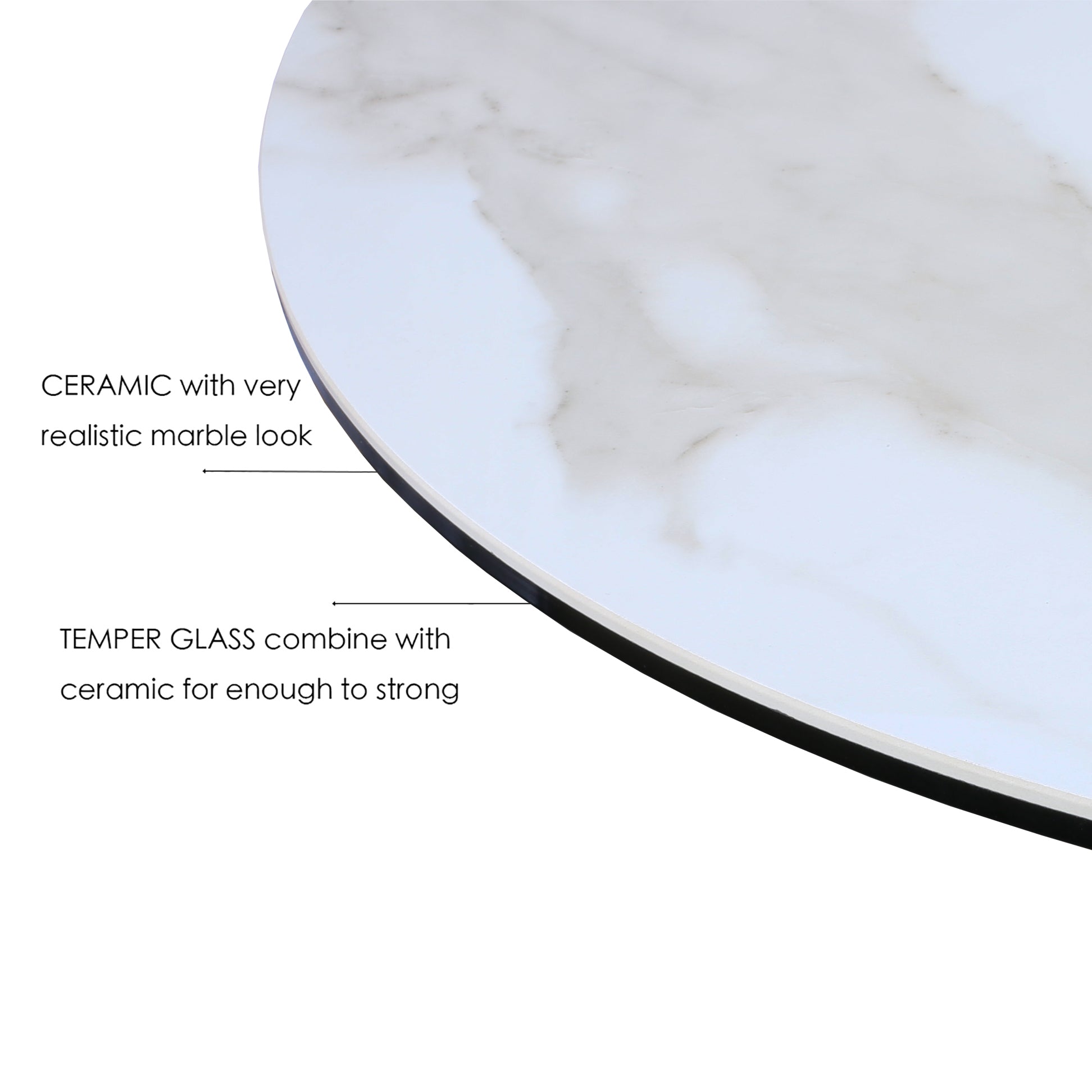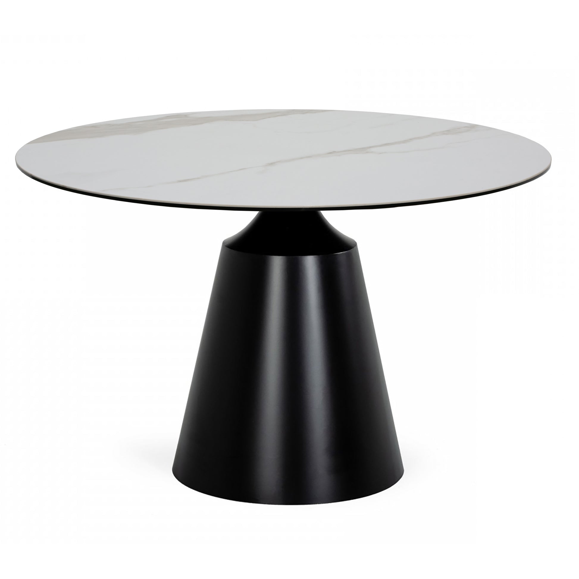 Bring sculptural elegance to your dining space with this 47-inch round dining table, featuring a realistic marble-look ceramic top bonded to tempered glass for exceptional strength and durability. The smooth circular surface encourages conversation and comfortably seats up to four people, making it ideal for kitchens, breakfast nooks, and compact dining areas. A bold matte black pedestal base adds modern contrast while providing generous legroom and stability. With its blend of refined stone aesthetics and contemporary form, this table elevates everyday dining with timeless sophistication.