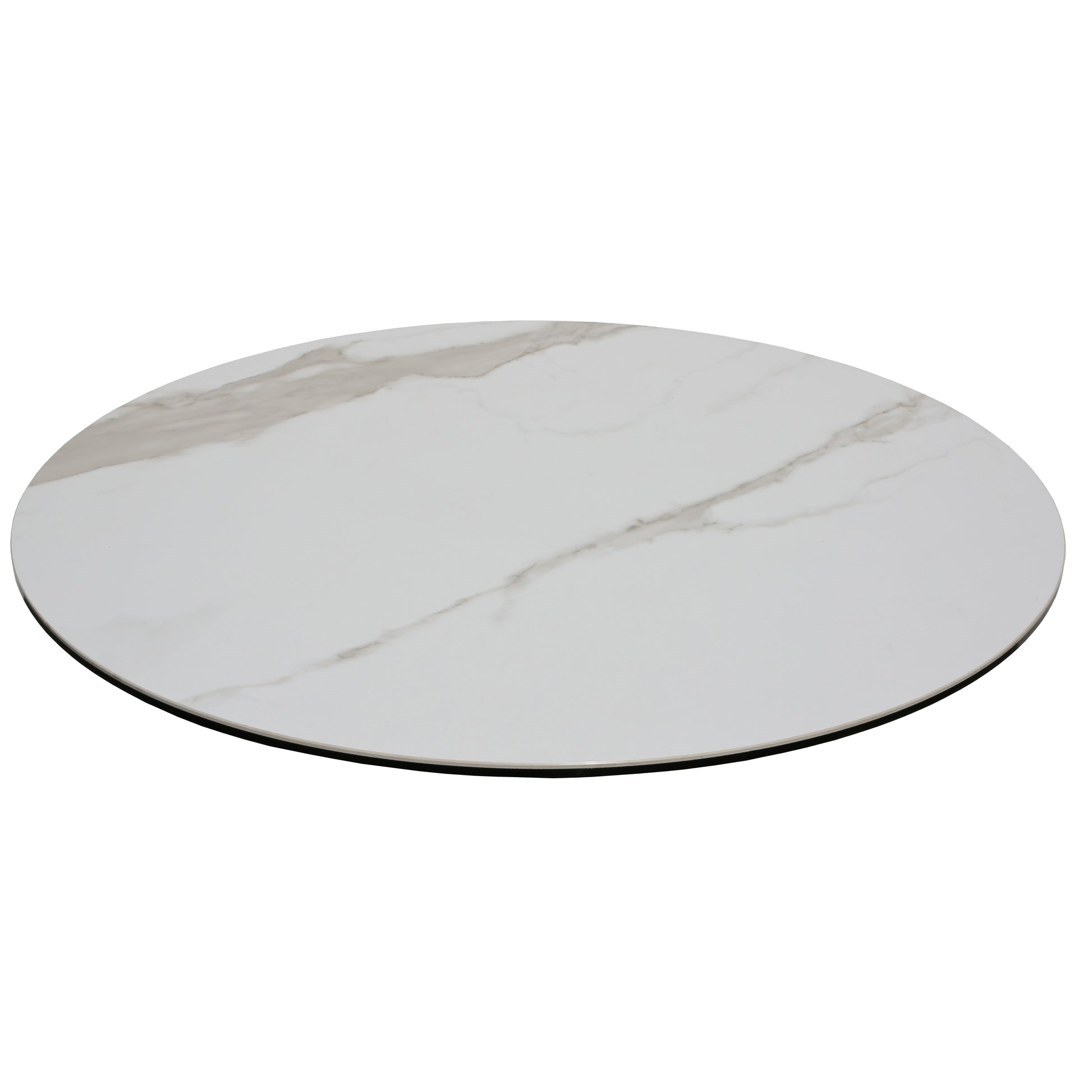 47" Round Marble-Effect Ceramic Dining Table with Black Pedestal Base